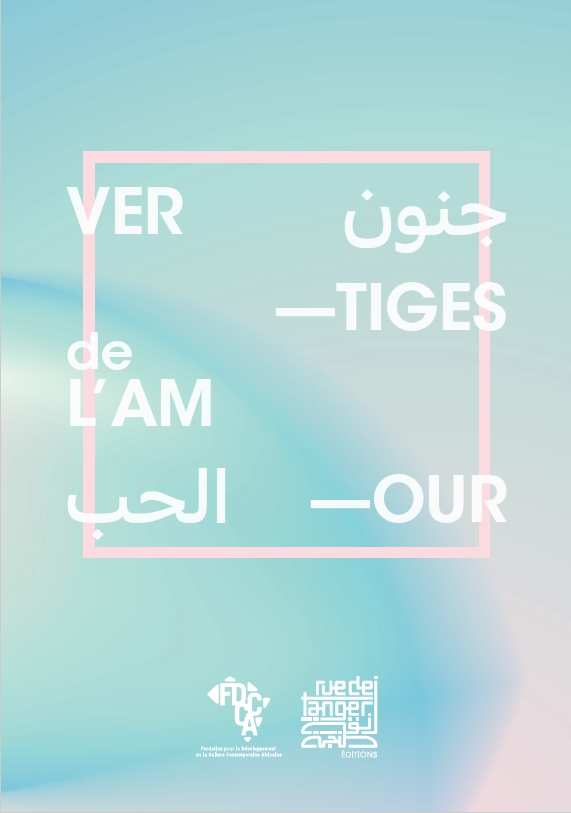 Book of the Exhibition Vertiges de l'Amour with 4 Moroccan artists: Yassine Balbzioui, Hicham Berrada, Mbarek Bouhchichi and Mohamed el Baz. The exhibition was part of the panafrican Event Prête-moi ton Rêve (Lend me your Dream). The exhibition was held in Rue de Tanger an independent contemporary art center and scenographed by its Founder: Amine Slimani.